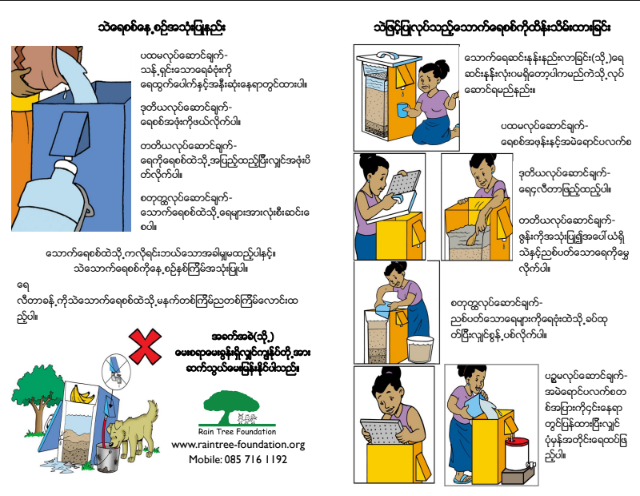 This poster gives an overview of what a biosand filter is, and how it works. Poster created in Thai by Rain Tree Foundation.