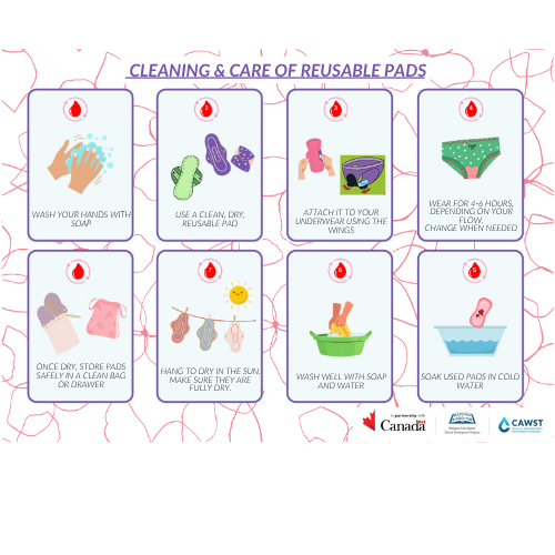 This poster has simple step-by-step instructions for cleaning and maintaining reusable cloth pads.