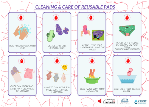 This poster has simple step-by-step instructions for cleaning and maintaining reusable cloth pads.