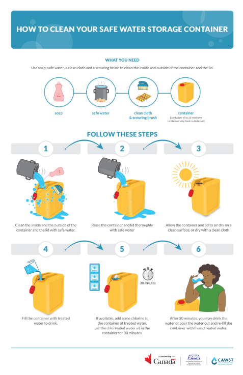 This poster, developed as part of the Global Affairs Canada (GAC) project, is a practical guide for cleaning and disinfecting safe water storage containers.